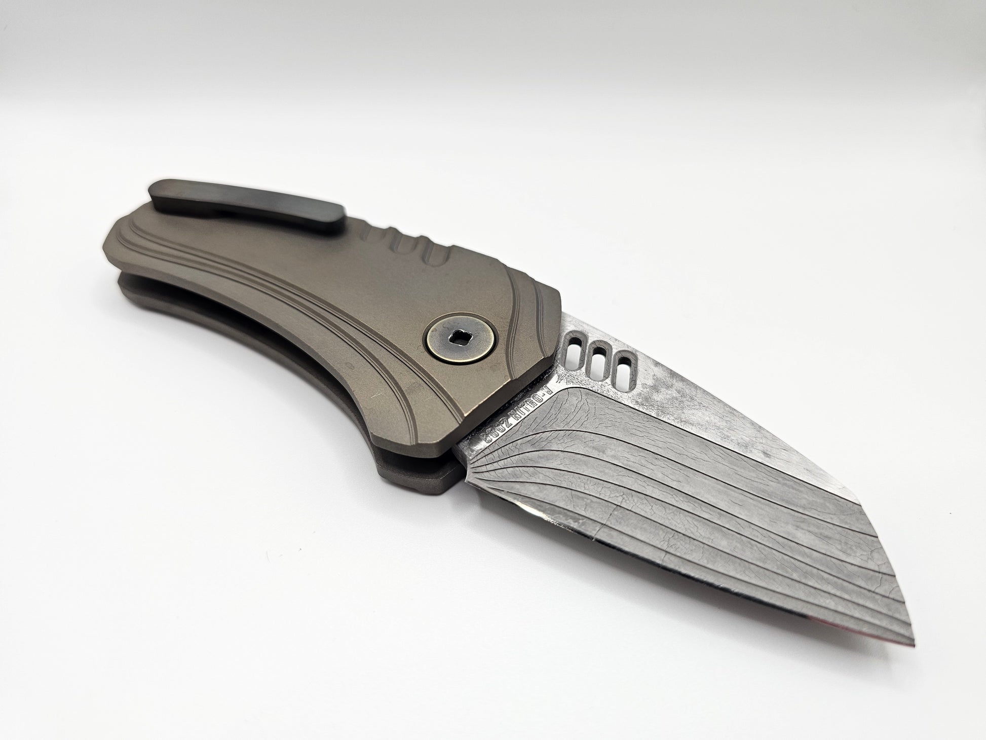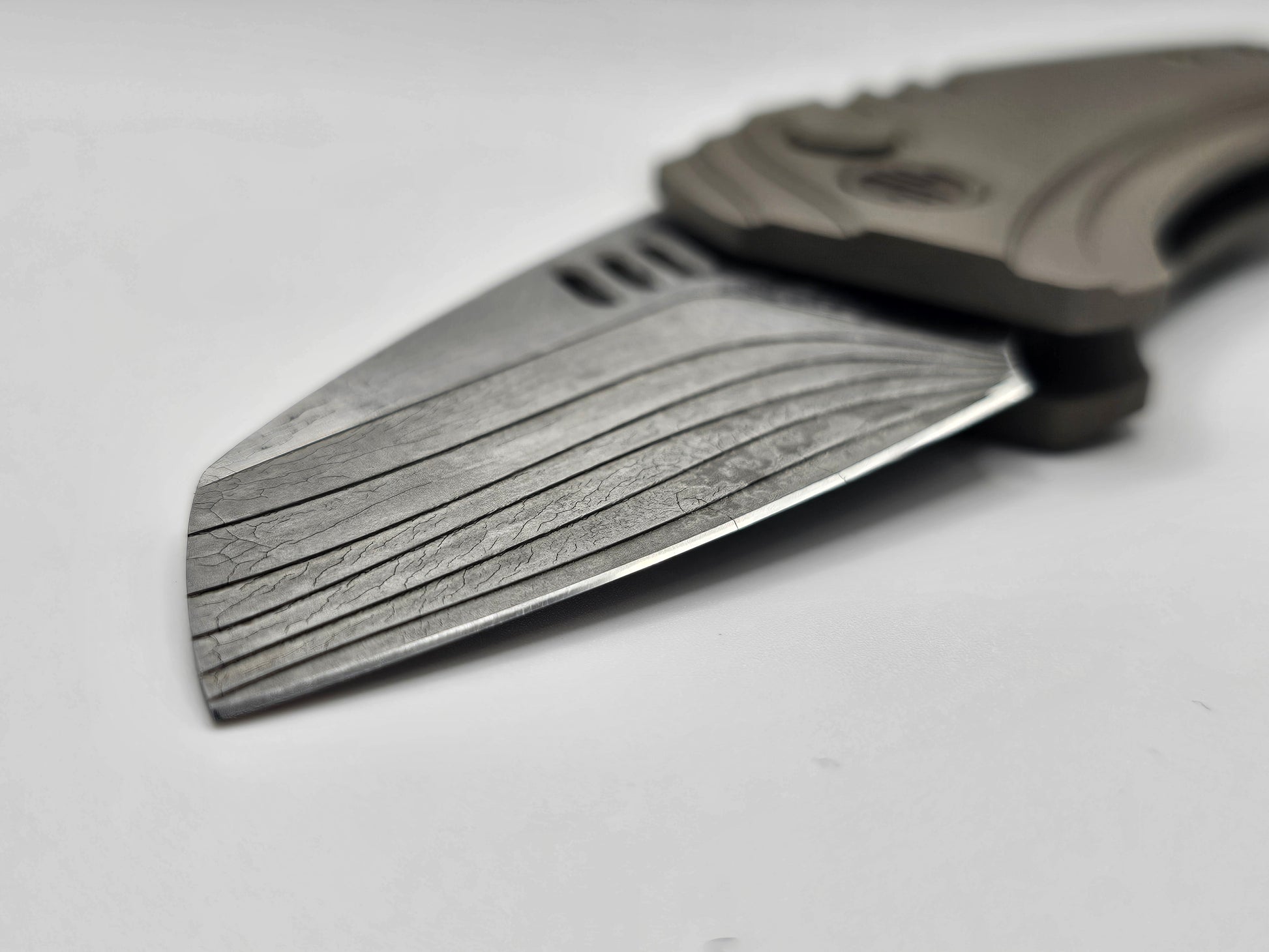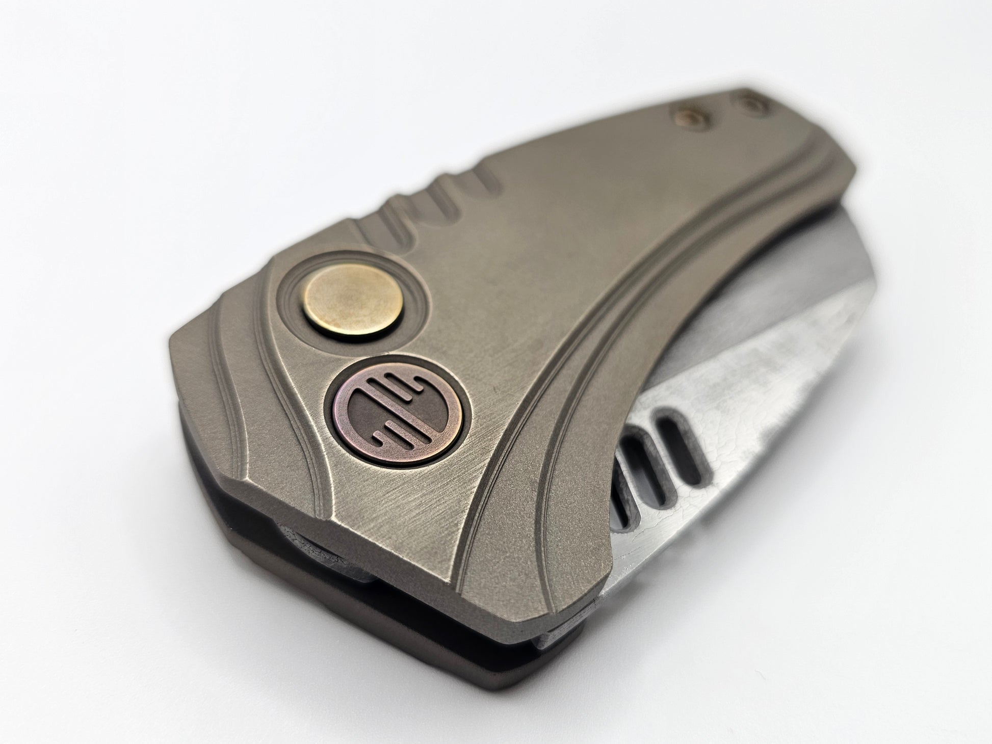 - Sandblasted, distressed, then bronzed anodized 6AL-4V Titanium handles